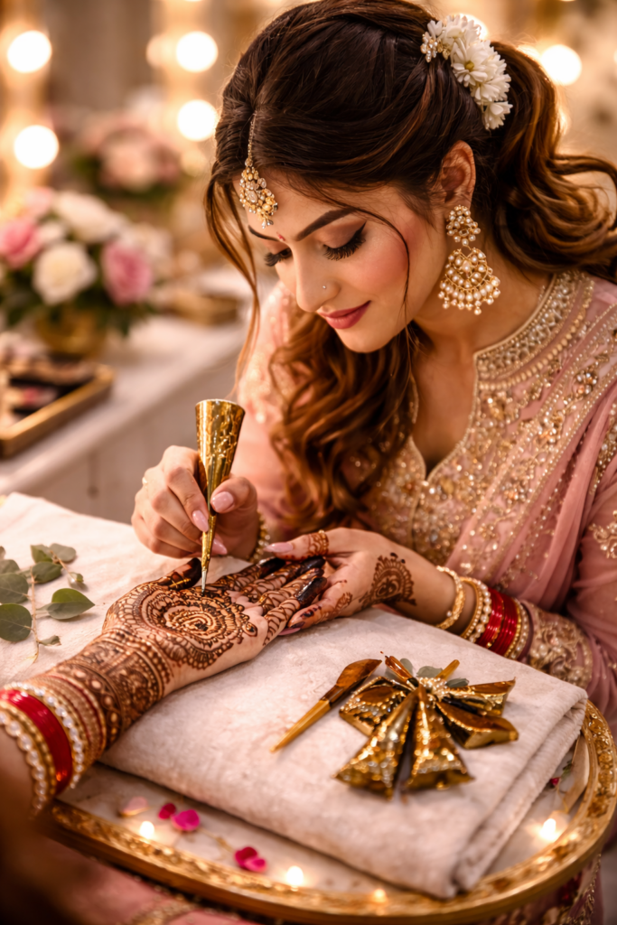 Intricate, detailed bridal mehendi designs crafted with passion and precision. We use high-quality natural henna for deep, rich color stain.
